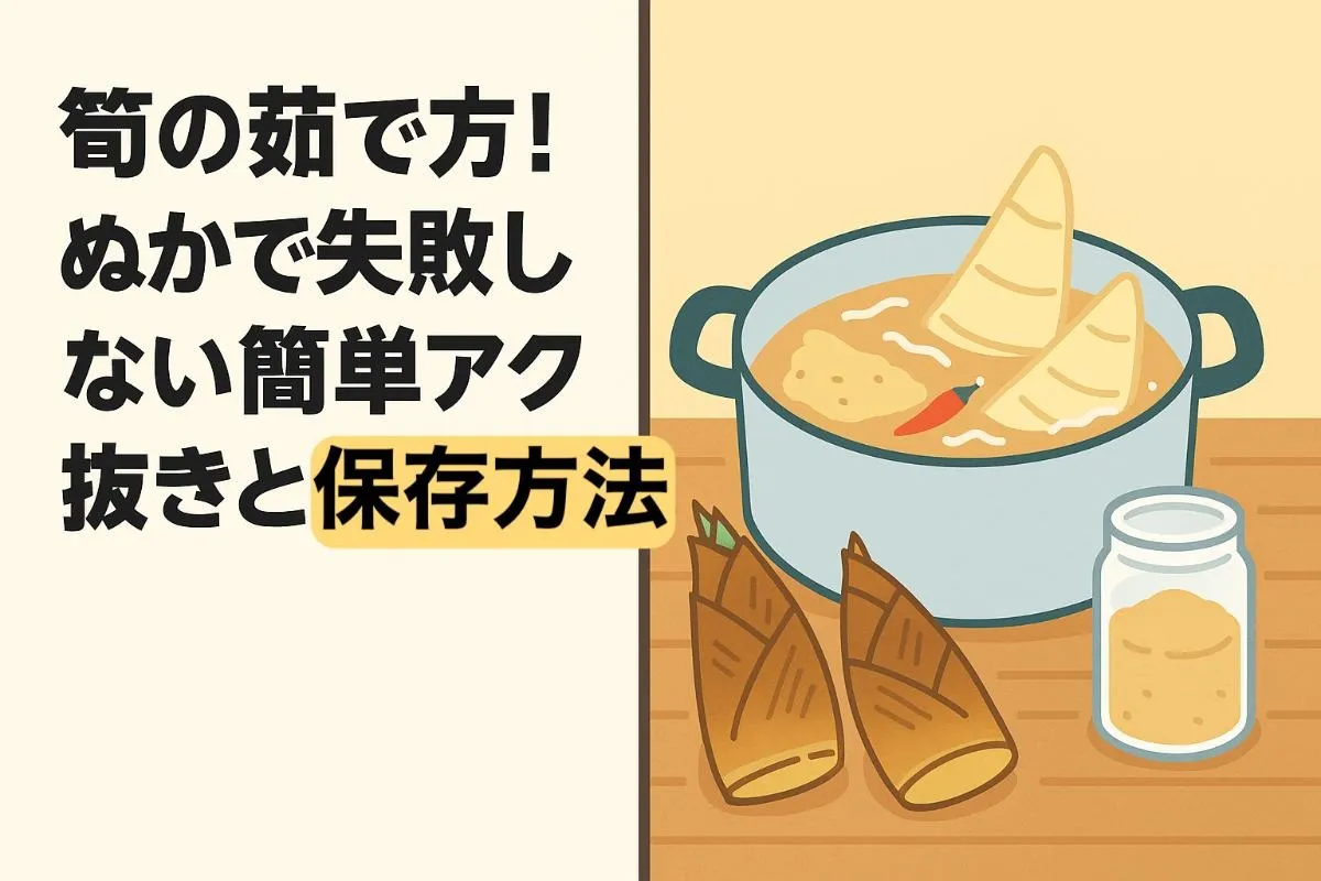 筍をぬかで茹でる際、えぐみが残る主な原因は「茹で時間不足」「ぬかの量不足」「筍の下処理不足」が挙げられます。えぐみ成分は十分な加熱とぬかの働きによって除去されるため、以下のポイントを守ることが大切です。